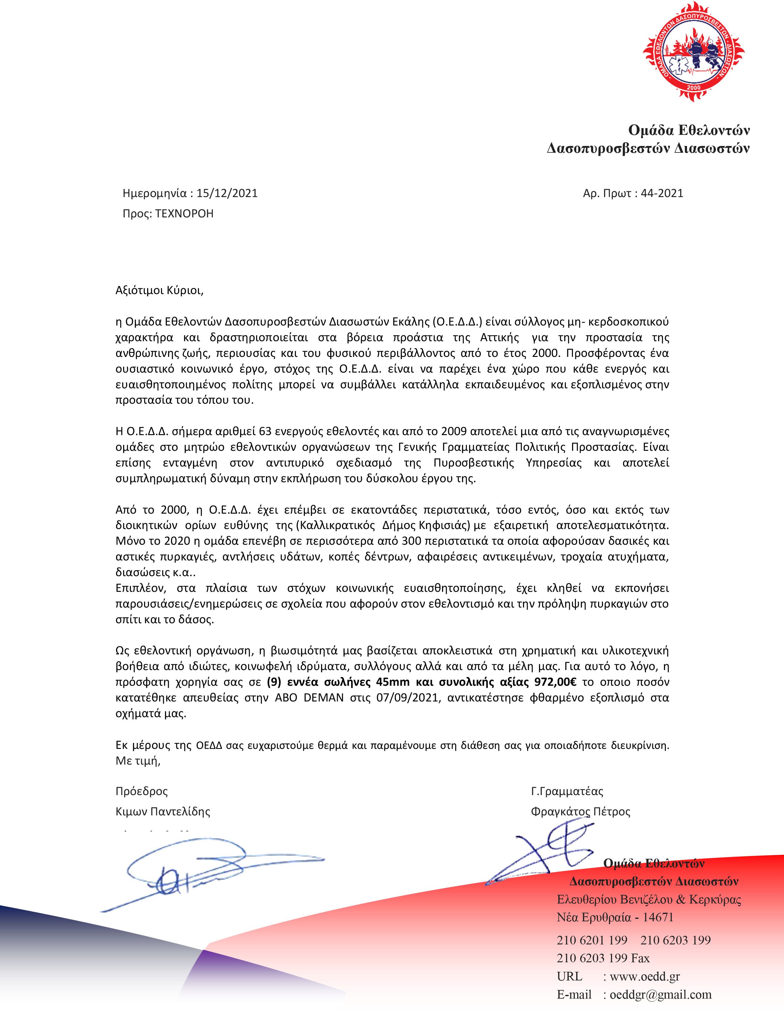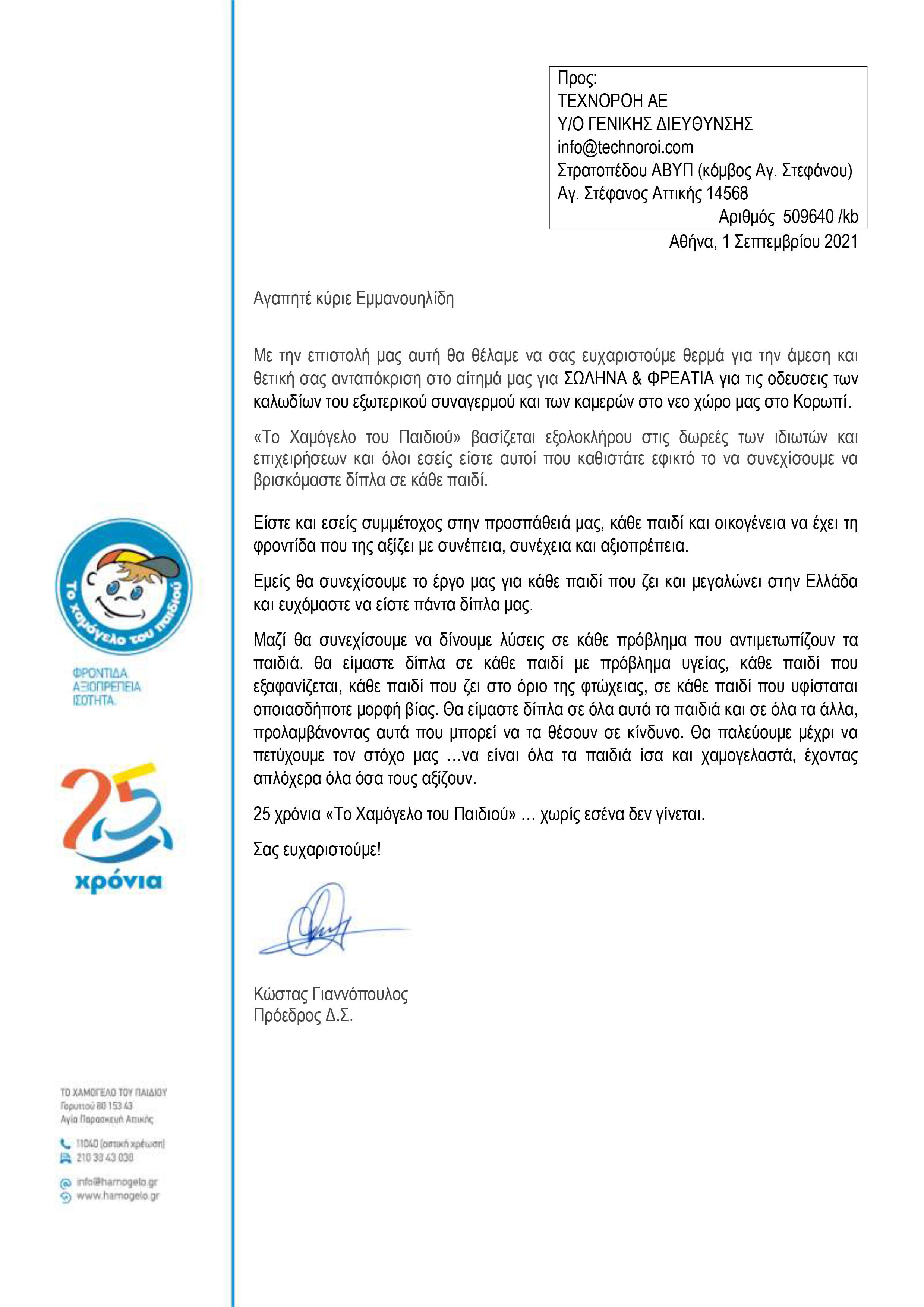 Στις δύσκολες ώρες που ακολούθησαν τις καταστροφικές φωτιές στη χώρα μας το περασμένο καλοκαίρι αλλά και στο κάλεσμα για την υποστήριξη αναγκών που προέκυψαν σε όμορους Δήμους και σε εθελοντικό οργανισμό για τα παιδιά, η ΤΕΧΝΟΡΟΗ ανταποκρίθηκε με αίσθημα ευθύνης, αλληλεγγύης και κοινωνικής προσφοράς για μια ακόμη φορά.